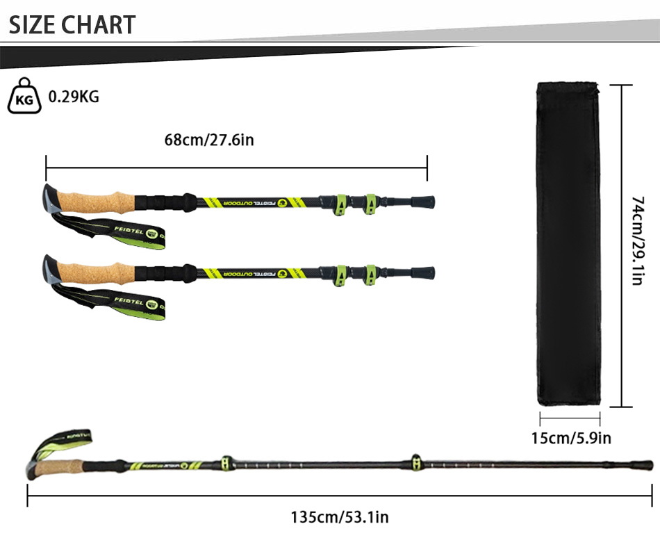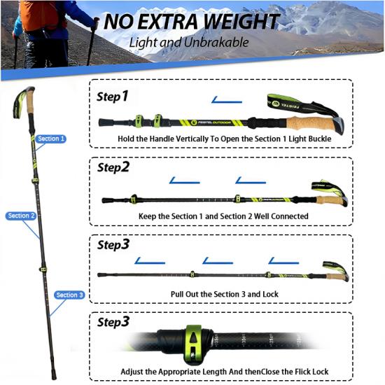 [compacto y fácil de viajar los bastones de trekking se pueden guardar fácilmente en el equipaje, mochilas y bolsas de lona. este bastón de trekking también viene con un protector de punta de goma fácil de guardar, conector de bastón y canasta de barro. [modelo nuevo y mejorado! los bastones de carrera vienen con correas acolchadas para una máxima comodidad y un agarre ergonómico. no hay necesidad de preocuparse de que el bastón de trekking se vuelva a caer.