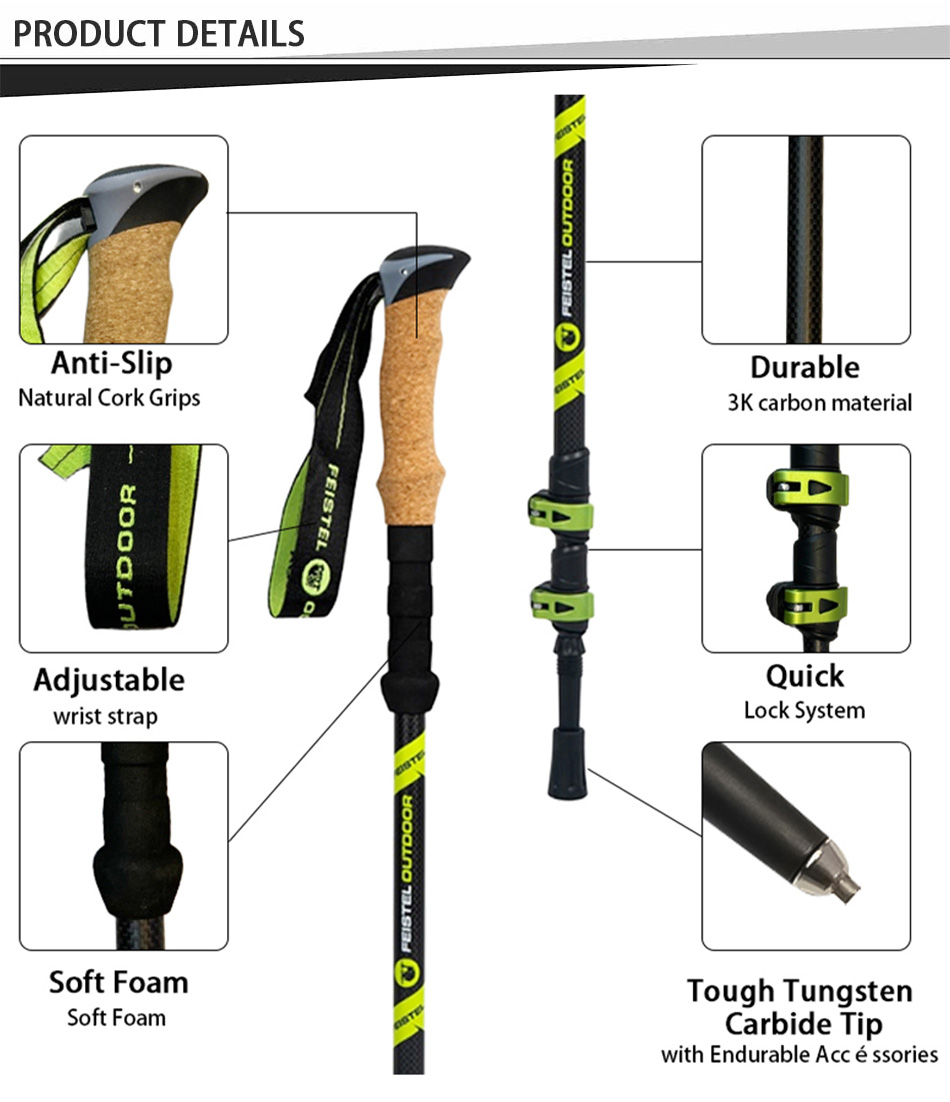 Bastón de senderismo retráctil antichoque a precio de fábrica OEM , bastones de senderismo de fibra de carbono , bastón de senderismo