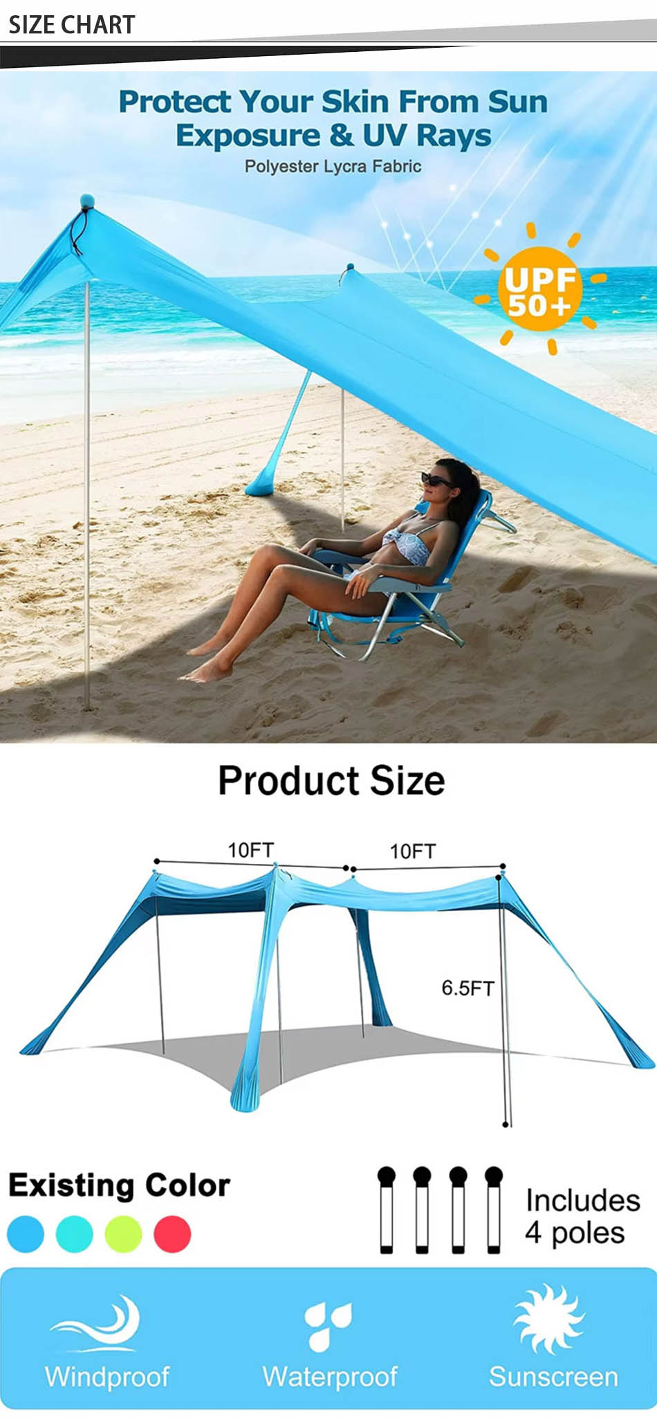 Ya sea para acampar, salidas de playa o reuniones en el patio trasero, este refugio solar ofrece protección superior, durabilidad y portabilidad, lo que lo convierte en un accesorio al aire libre esencial.