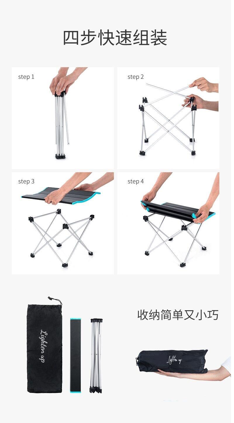 la mesa plegable de aleación de aluminio tiene un pequeño espacio , y la superficie de la mesa no es fácil de caer , y la estabilidad es muy buena . hace que todo el viaje sea más conveniente .
