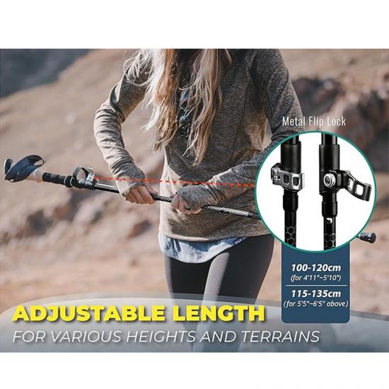 Bastón de trekking de carbono para escalada, senderismo, aluminio, ajustable, ultraligero, venta al por mayor, OEM, amazon