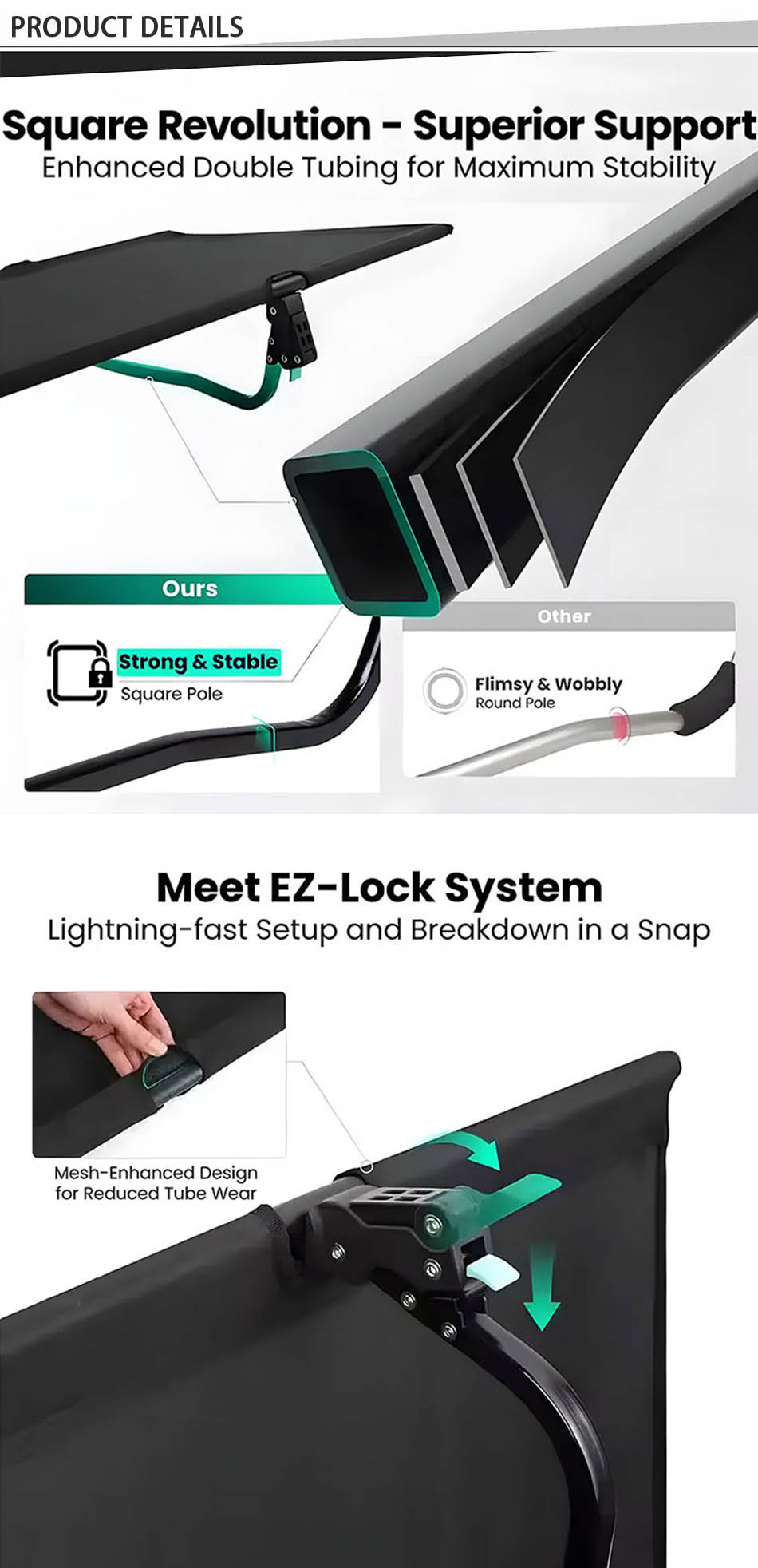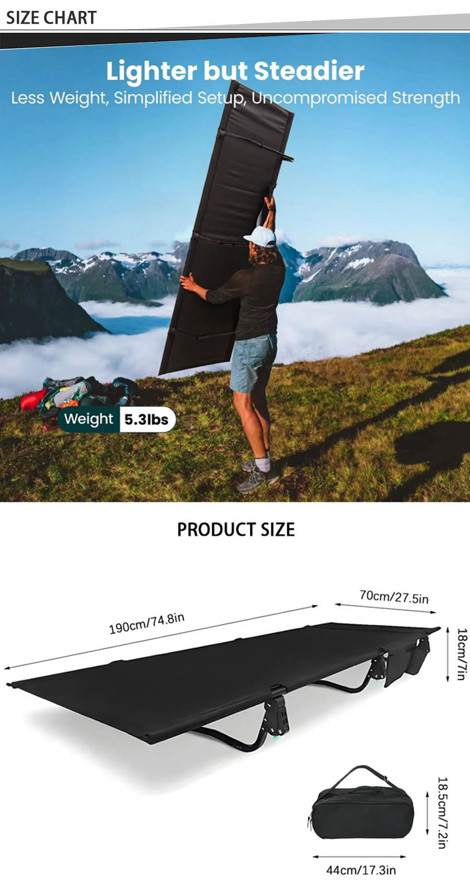 La superficie de la tela transpirable mejora la comodidad, mientras que el diseño elevado lo mantiene alejado de un terreno desigual, asegurando un sueño reparador. Ideal para entusiastas del aire libre, viajeros y campistas, esta cama portátil ofrece un diseño ergonómico, una excelente capacidad de peso y un rendimiento resistente al clima.