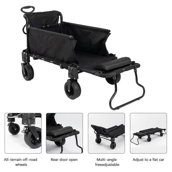 Diseñado para la máxima conveniencia, funciona como un carrito de compras, un vagón de utilidad plegable e incluso un sofá cama, lo que lo hace ideal para diversas necesidades.   El marco resistente garantiza la durabilidad y la estabilidad, mientras que el diseño plegable permite un fácil almacenamiento y transporte.