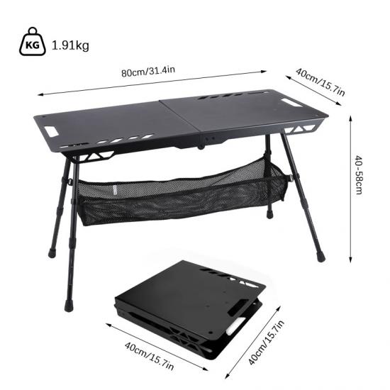 Producto : Esta mesa de campamento al aire libre personalizada es una mesa de acampar IGT de aluminio liviana, que ofrece durabilidad, portabilidad y estabilidad para aventuras al aire libre, picnics y configuraciones de cocina para el campamento.