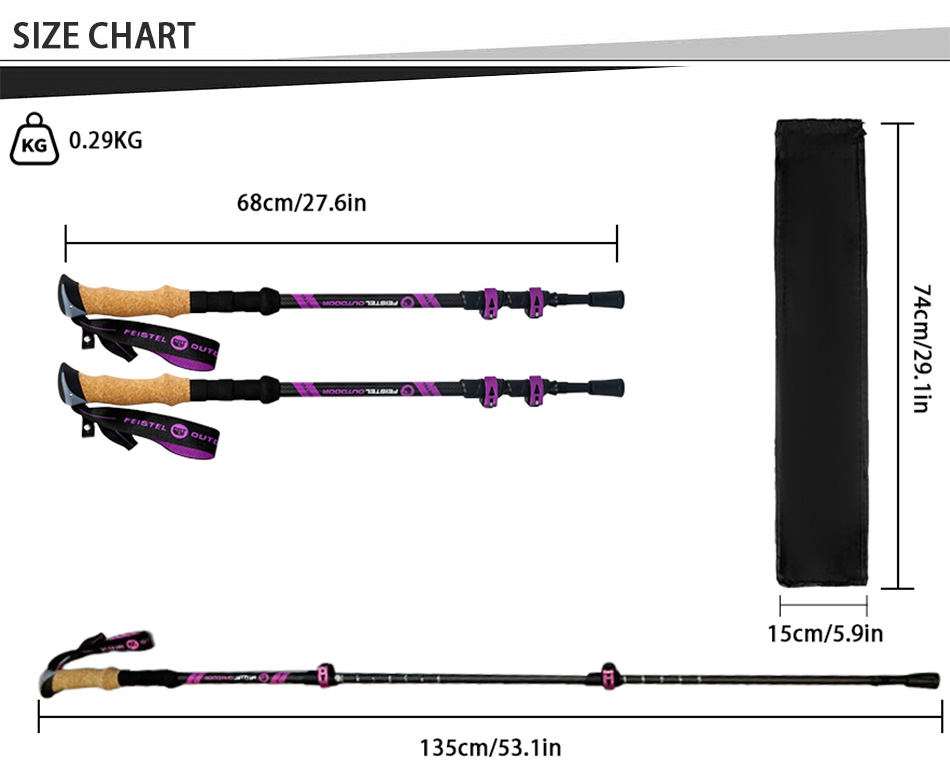[compacto y fácil de viajar los bastones de trekking se pueden guardar fácilmente en el equipaje, mochilas y bolsas de lona. este bastón de trekking también viene con un protector de punta de goma fácil de guardar, conector de bastón y canasta de barro. [modelo nuevo y mejorado! los bastones de carrera vienen con correas acolchadas para una máxima comodidad y un agarre ergonómico. no hay necesidad de preocuparse de que el bastón de trekking se vuelva a caer.