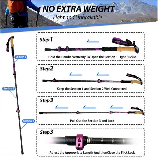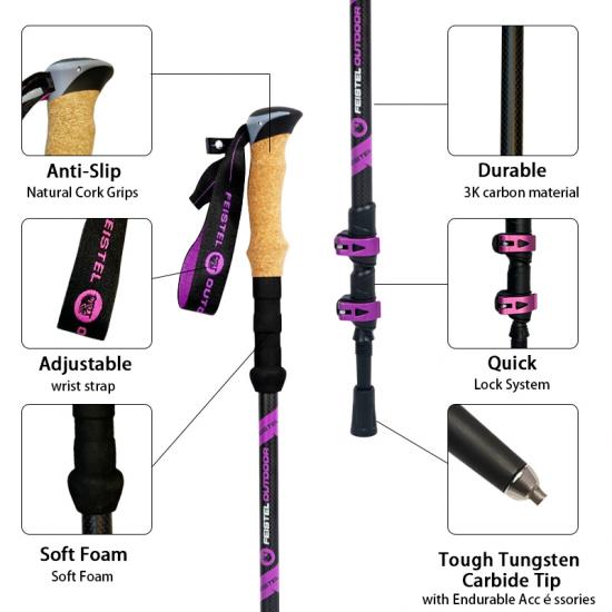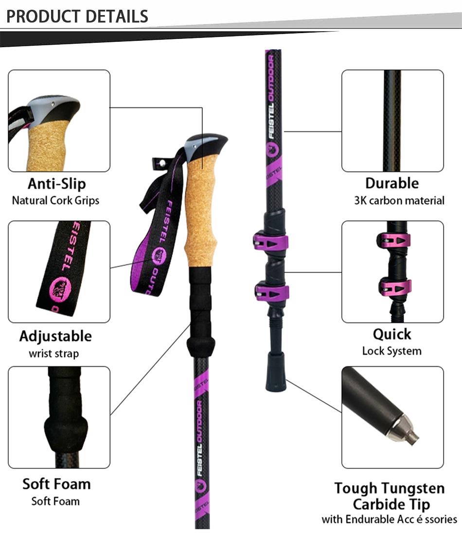 Bastón de senderismo retráctil antichoque a precio de fábrica OEM , bastones de senderismo de fibra de carbono , bastón de senderismo