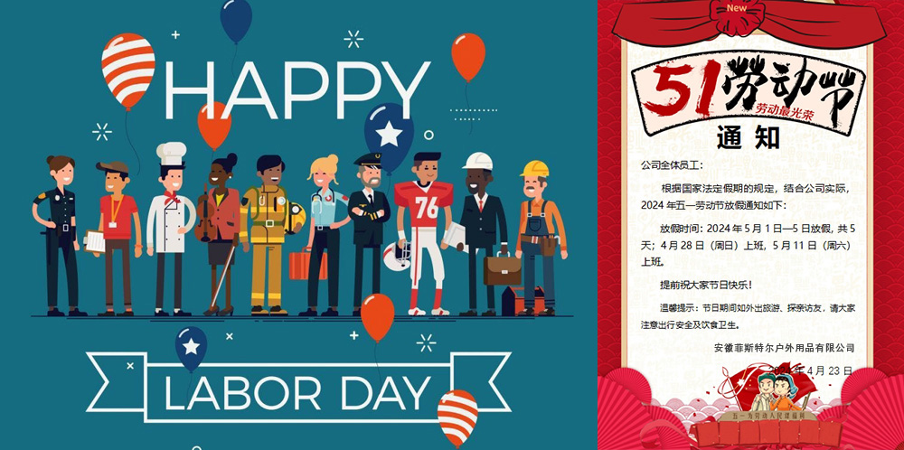 Anhui Feistel Outdoor Co., Ltd. tendrá un feriado de 5 días del 1 al 5 de mayo.
