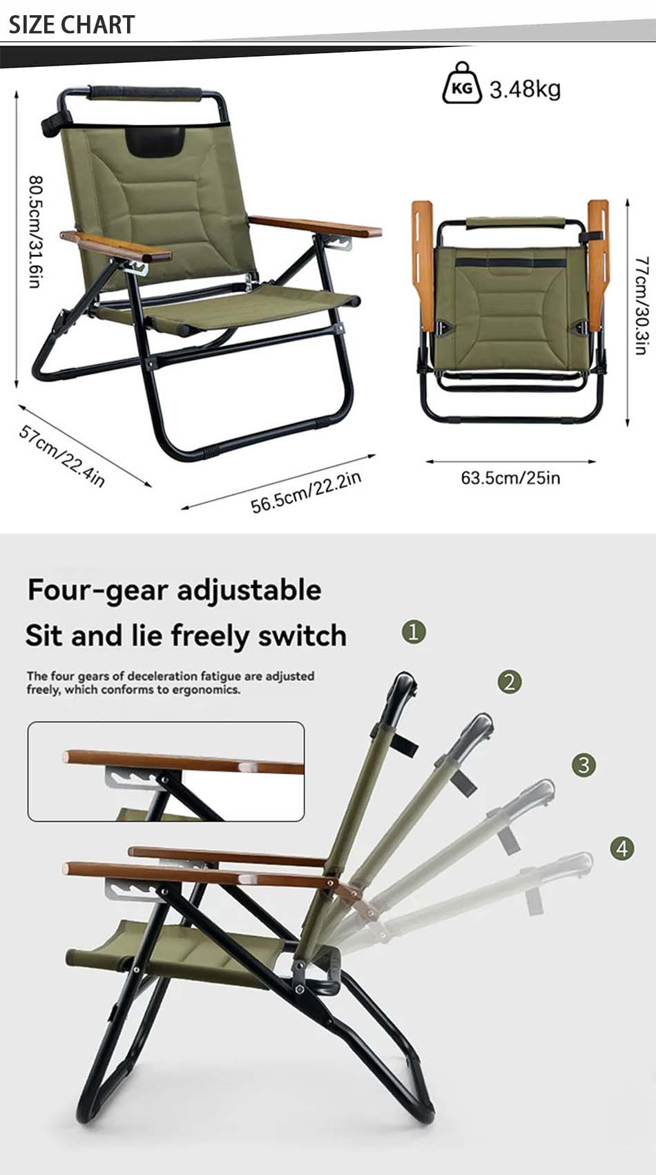 Silla de camping plegable reclinable ajustable para exteriores