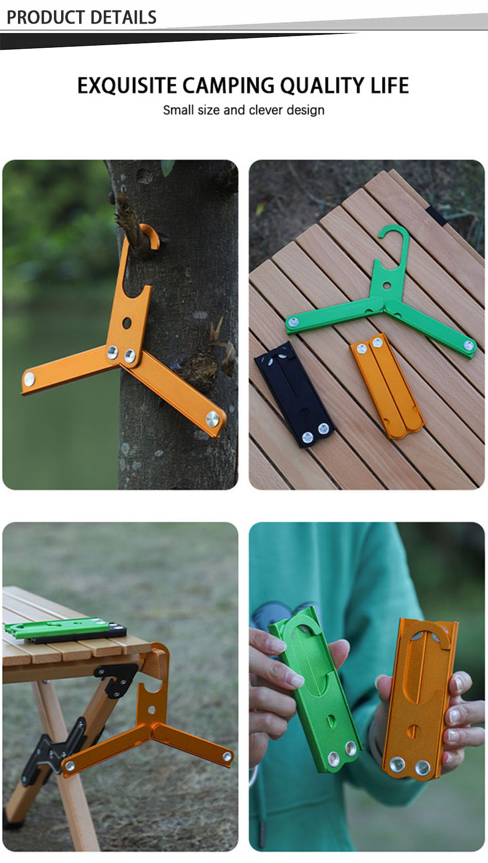 Producto : Estas perchas de viaje plegables de aleación de aluminio portátiles para acampar al aire libre son livianas, compactas y duraderas, perfectas para colgar ropa mientras acampa, camina o viaja.