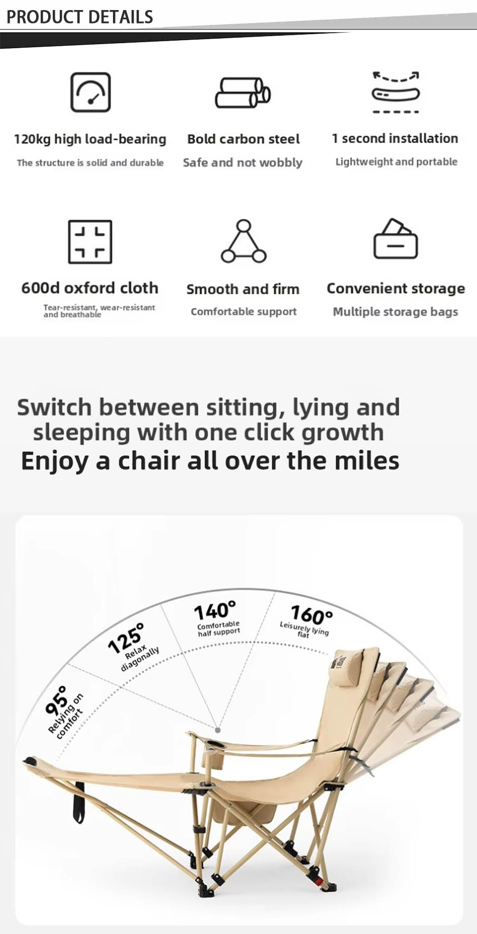 Marca : ANHUI FEISTEL FACTORY Relacionar la fabricación : OEM y ODM Producto : Relájese al aire libre con una silla de camping plegable, reclinable y ajustable, que ofrece múltiples posiciones para máxima comodidad y conveniencia durante sus aventuras de campamento.