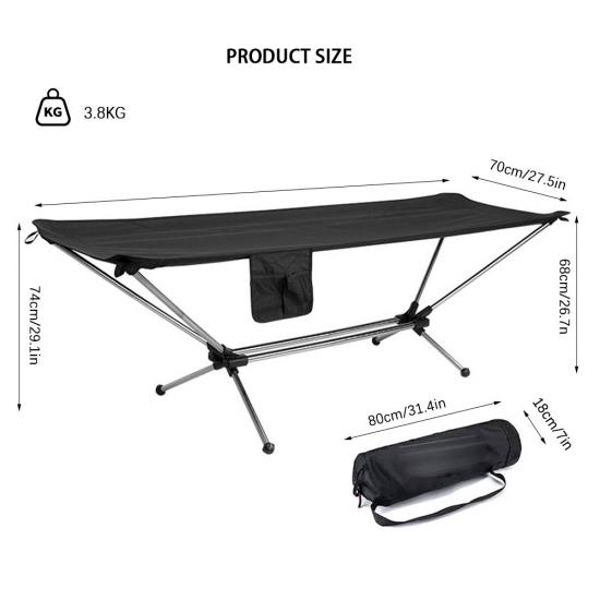 Producto : Esta cuna de aleación de aleación de aluminio portátil al aire libre plegable ofrece un diseño liviano, duradero y plegable, que ofrece una relajación cómoda para acampar, viajes de playa y aventuras al aire libre.