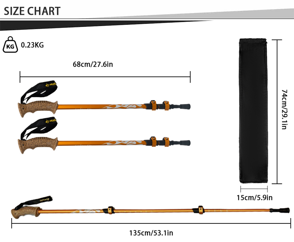 [compacto y fácil de viajar los bastones de trekking se pueden guardar fácilmente en el equipaje, mochilas y bolsas de lona. este bastón de trekking también viene con un protector de punta de goma fácil de guardar, conector de bastón y canasta de barro. [modelo nuevo y mejorado! los bastones de carrera vienen con correas acolchadas para una máxima comodidad y un agarre ergonómico. no hay necesidad de preocuparse de que el bastón de trekking se vuelva a caer.