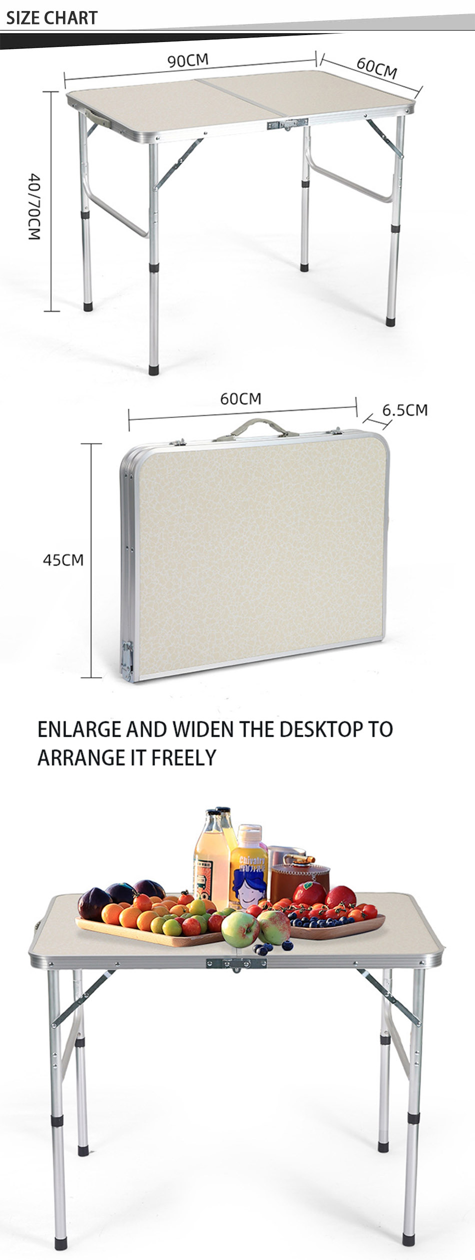 Producto : La mesa plegable portátil de aleación de aluminio presenta altura ajustable y uso multifuncional, ideal para picnics al aire libre, días de playa, barbacoas, campamentos y viajes con una fácil instalación.