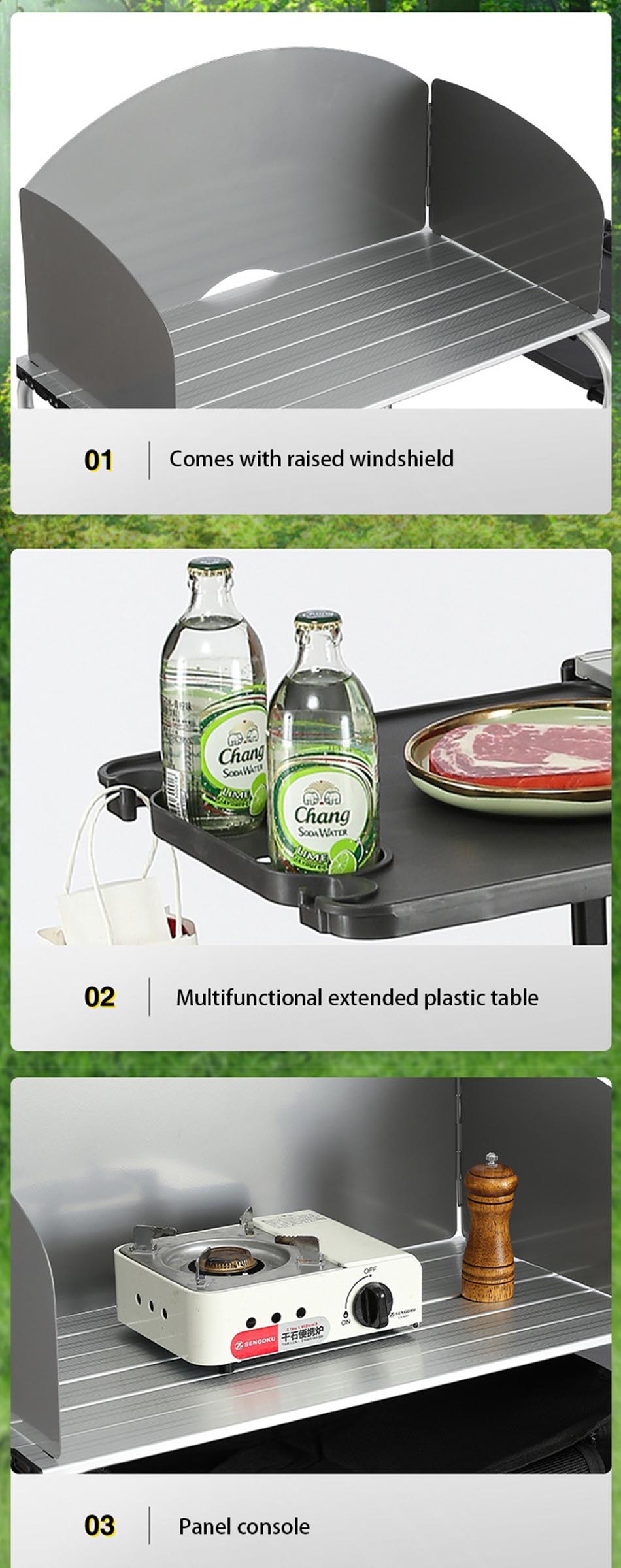 La mesa plegable portátil multifuncional IGT de aleación de aluminio para camping es un elemento esencial versátil y duradero para exteriores, diseñado para aventureros que valoran la comodidad y el rendimiento. Fabricada con aleación de aluminio de alta resistencia, esta mesa es ligera y estable, lo que facilita su transporte, montaje y almacenamiento. Su diseño multifuncional incluye un sistema modular IGT (mesa de parrilla de hierro) que admite diversos accesorios como estufas, parrillas y estantes de almacenamiento, ideal para crear una cocina o comedor móvil en la naturaleza. Las patas ajustables permiten un uso estable en terrenos irregulares, mientras que su estructura plegable ahorra espacio durante el transporte. Perfecta para camping, picnics, barbacoas o fiestas al aire libre, esta mesa garantiza una superficie fiable para todas sus necesidades de cocina y comedor al aire libre.