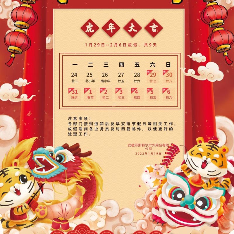 con motivo del festival tradicional "festival de primavera", todo el personal de anhui feistel outdoor product co., ltd. ¡les deseamos a todos los clientes y amigos nuevos y antiguos un buen año! ¡Te deseo un feliz año nuevo!