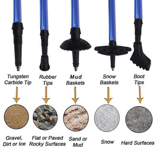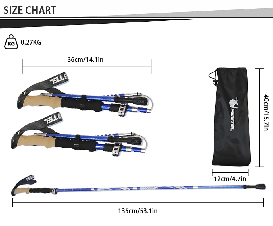 Marca : FÁBRICA DE ANHUI FEISTEL Relate Manufacturing : OEM y ODM Producto : Los bastones de senderismo plegables multifuncionales de aluminio 7075 ultralivianos cuentan con una construcción duradera, manijas cómodas de EVA y portabilidad compacta, ofreciendo un soporte confiable para caminatas al aire libre, escaladas, trekking y aventuras de caminatas diarias.