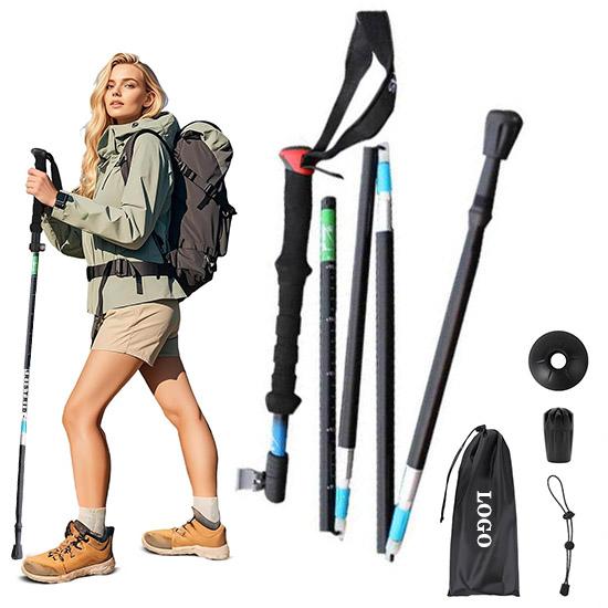 Bastón de trekking de carbono para escalada, senderismo, aluminio, ajustable, ultraligero, venta al por mayor, OEM, amazon