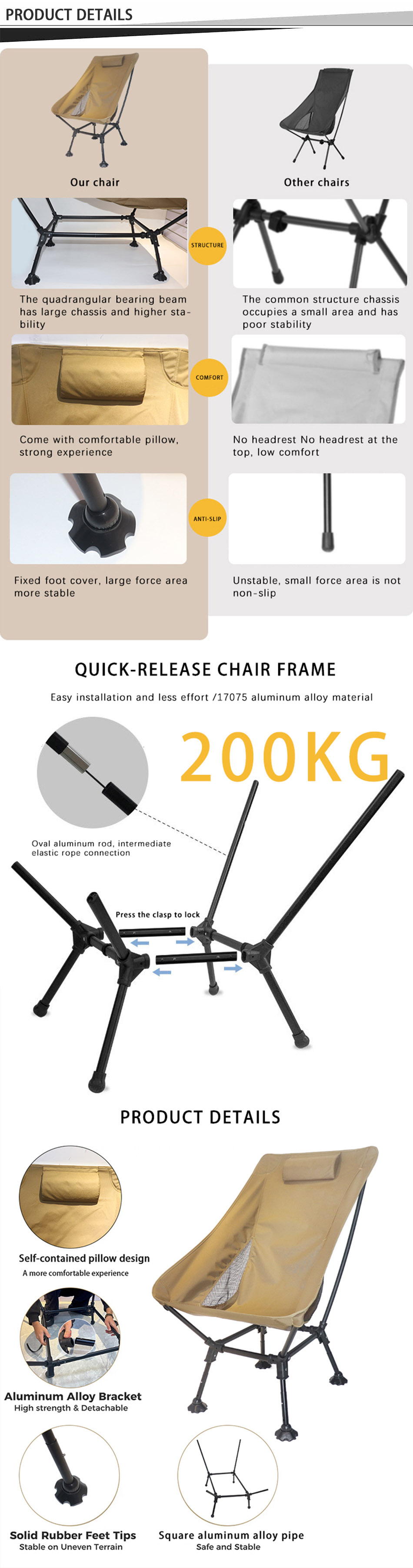 Marca : ANHUI FEISTEL FACTORY Relacionar la fabricación : OEM y ODM Producto : Silla portátil plegable de aluminio para acampar en la playa al aire libre, cómoda y portátil, puede disfrutar del ocio y la comodidad mientras acampa.