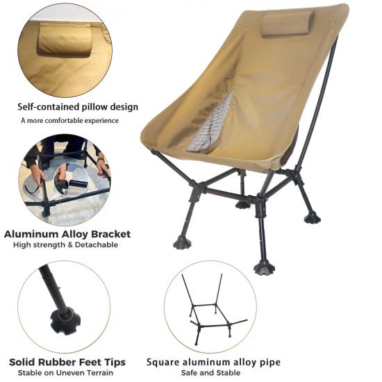 Marca : ANHUI FEISTEL FACTORY Relacionar la fabricación : OEM y ODM Producto : Silla de camping ultraligera con respaldo alto y bolsa de transporte, perfecta para aventuras al aire libre, que brinda comodidad, durabilidad y fácil portabilidad.